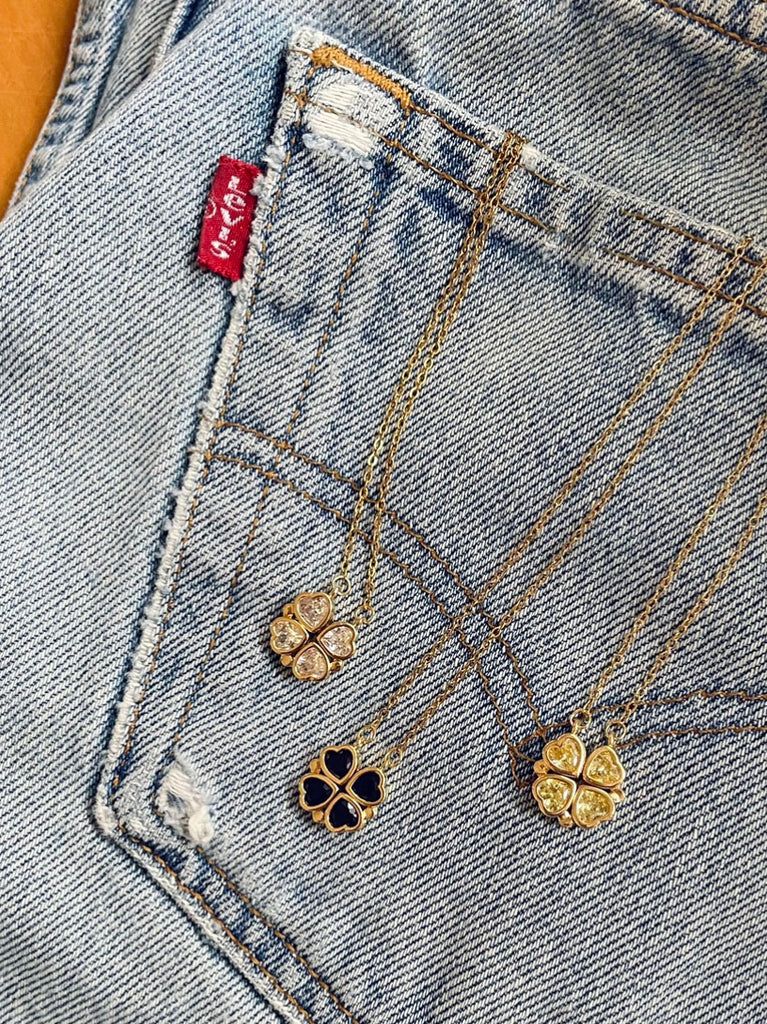 CLOVER Pendant Necklace (Lemon Zircon) • NEW