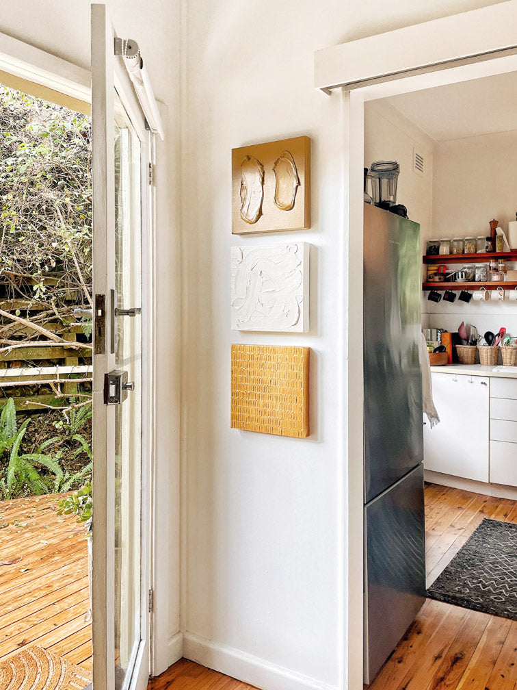 With a formal design background and decade-long careers in both Graphic Design and homewares/interiors, Louise Friedland has blended her combined skills, bringing about a perfect marriage of her two passions in the contemporary artworks she creates. A passion for design and interiors of the 50's 60's and 70's (as well as a lifelong obsession with gold) heavily inspires Louise’s creations - predominantly acrylic on canvas. Her work draws additional inspiration from simplicity, form and texture.