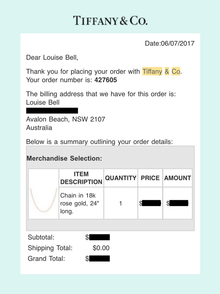 Purchased online, brand new directly from Tiffany & Co. See images for original Tiffany & Co confirmation email. I no longer have the box or pouch, sorry (but it will be shipped in a plain box/pouch).