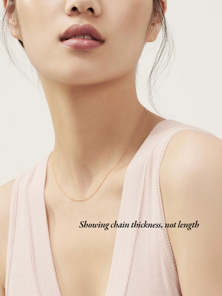 A solid 18k gold fine trace chain. A versatile piece that looks great on its own, layered with other necklaces or showcasing your favourite pendants. This elegant piece is guaranteed to shine bright for years to come.